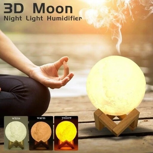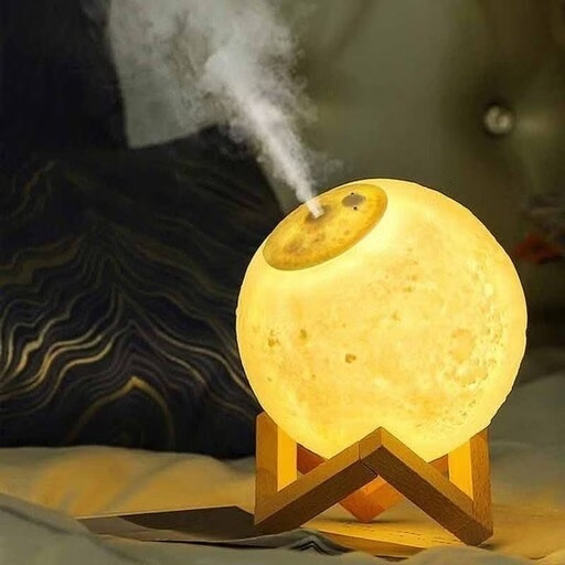 این چراغ خواب جذاب که به شکل ماه طراحی شده است با استفاده از ماژول اولتراسونیک و مقداری آب محیط را نیز مرطوب میکند. این چراغ خواب جذاب قابلیت تغییر رنگ را نیز دارد و با ضربه رنگ نور آن تغییر میکند. این چراغ خواب جذاب زیبا کننده محیط اتاق خواب شما میتواند باشد. همچنین این دستگاه میتواند اتاق خواب یا محیط دیگر را مرطوب نگه دارد و از خشکی هوا جلوگیری کند که رطوبت خود در محیطهای خشک سبب بهبود تنفس می شود.
